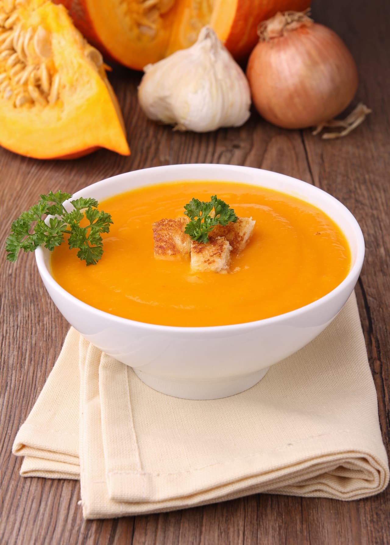 Es la entrada perfecta para cualquier almuerzo o cena, además que siempre puedes variarla con algún toque personal para que cada plato sea único: hoy la condimentas con perejil, mañana con albahaca, pasado con finas hierbas… Una versión puede ser la sopa de zapallo que verás a continuación.