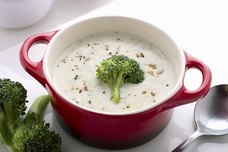 La sopa vegana de brócoli obtiene la consistencia cremosa de la leche de arroz. Y su contenido de fibras es lo que aporta las propiedades desintoxicantes.