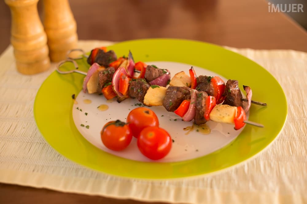 Cuando tengas poco tiempo para cocinar, prepara una rápidas brochetas de lomo y manzana. Y si a los niños no les gusta la manzana, puedes sustituirla por los ingredientes que más les gusten.