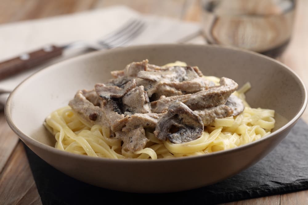 La versión light del tradicional strogonoff sustituye la crema de leche por yogur natural. Además de ser muy sabrosa, la receta contiene menos grasa y calorías.