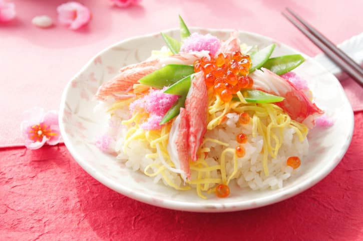 Este es el sushi esparcido es un bol de arroz y sazonado con otros ingredientes. También se lo llama barazushi (ばら寿司).