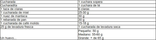 Ya son varias las lectoras de ElGranChef que nos han hecho saber sus dudas sobre las equivalencias de las recetas. Esto resulta claramente un problema a la hora de cocinar, y como no queremos que se queden sin preparar los ricos platos que le proponemos día a día, a continuación les dejamos algunas tablas de equivalencias que les serán de gran ayuda.