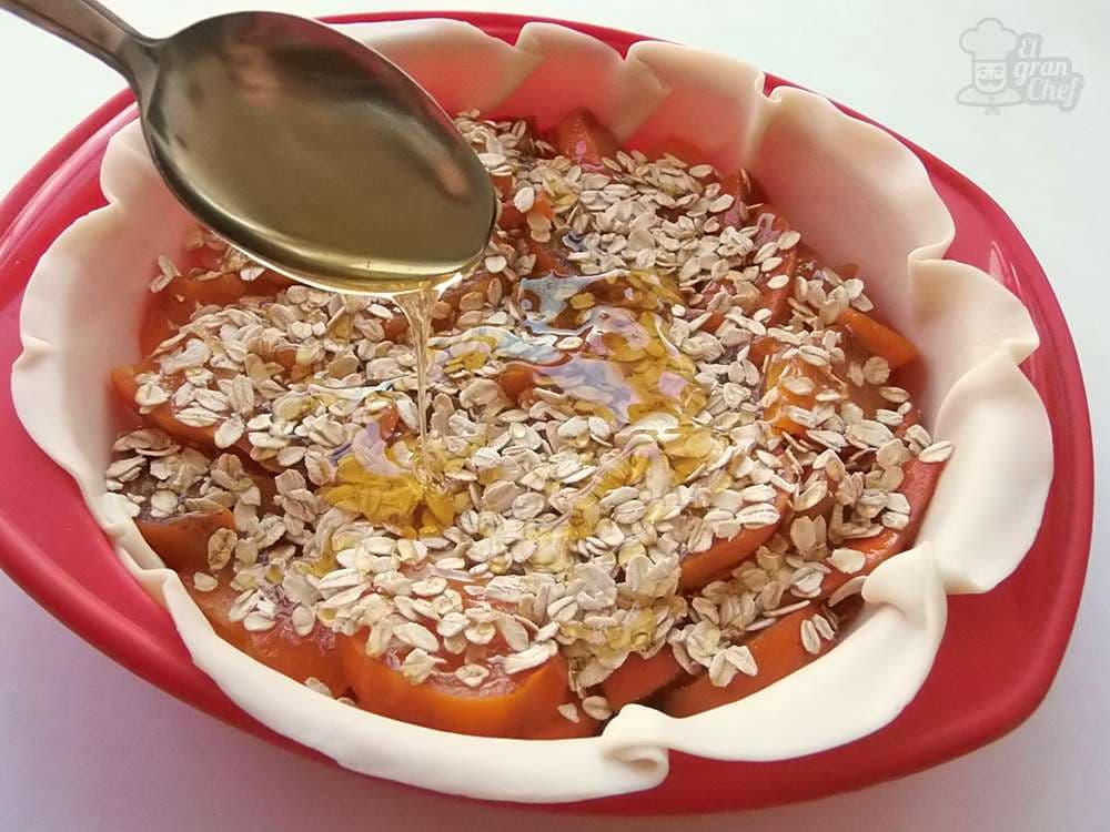 Luego, espolvoreé una buena cantidad de avena arrollada encima.