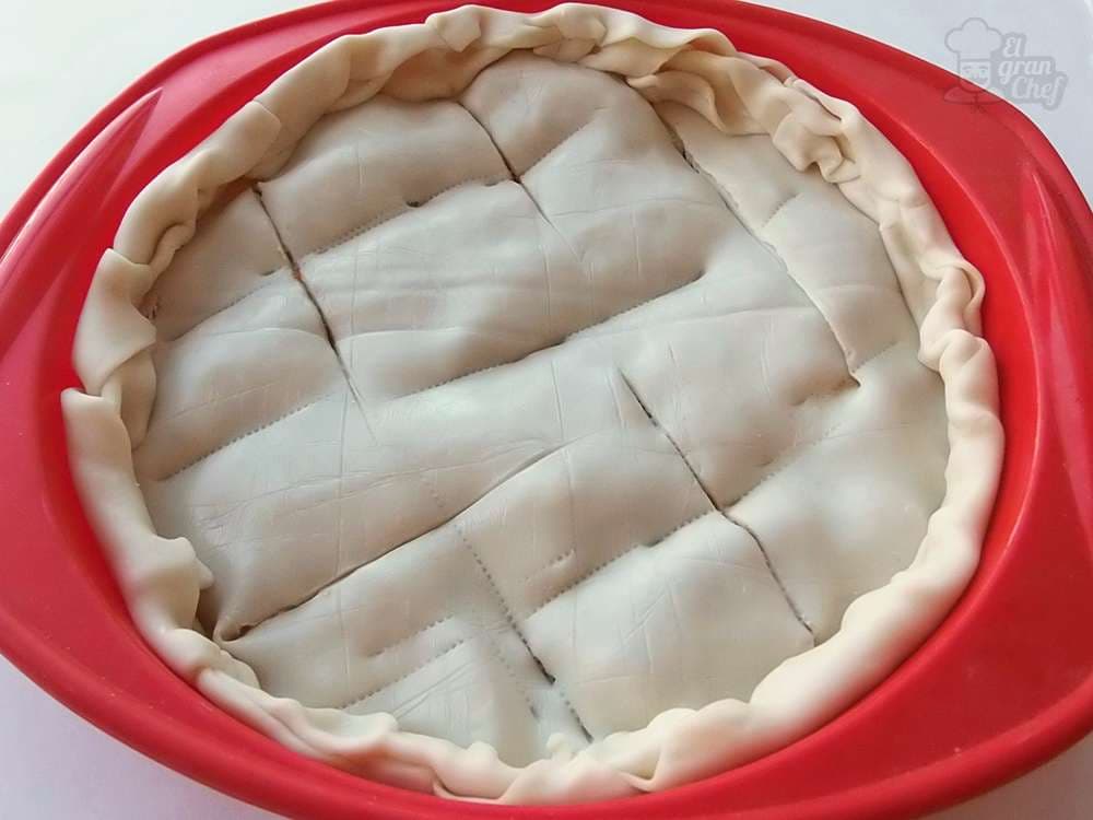 Por último, cerré la tarta con la segunda tapa de hojaldre y realicé unos cortes encima para que no se hinche.