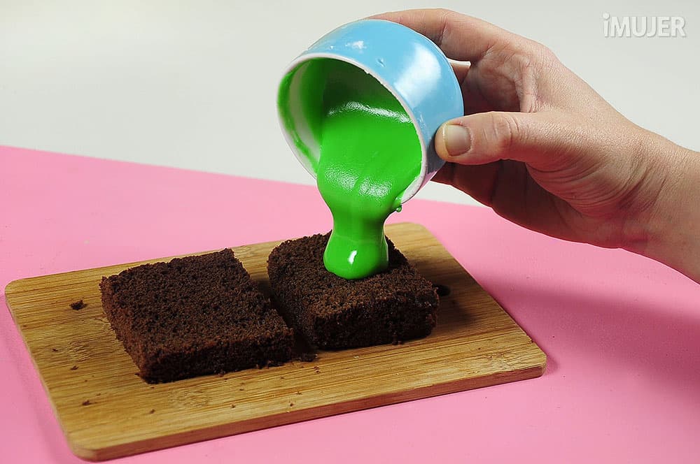 Pon el colorante verde en la azúcar impalpable y mézclalo.