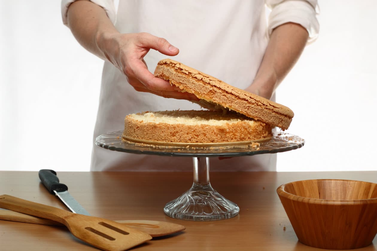 - Un cuchillo de sierra imprescindible para un corte limpio y parejo del bizcochuelo.