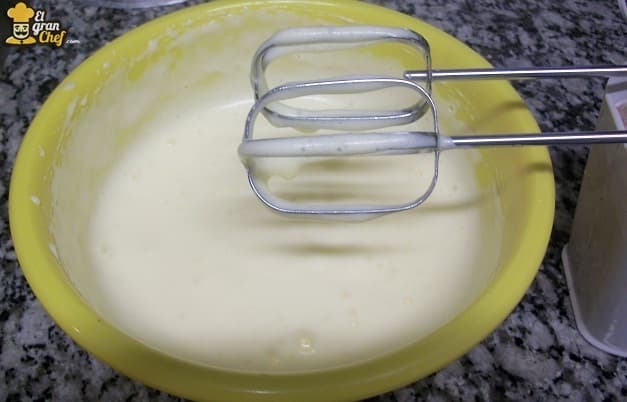 Luego agregamos el queso crema a la mezcla de huevos y, por último, la crema batida. Por supuesto, intentaremos mantener el aire que hemos logrado durante los batidos. Para eso, los movimientos deben ser envolventes y suaves, preferentemente con una espátula o batidor.