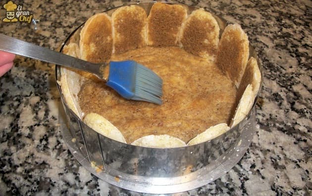 - El molde que utilicé es de 20 cm de diámetro y sobra mezcla de queso. Con lo que sobra podemos armar un tiramisú de 10 cm de diámetro, o bien colocarlo en copas.