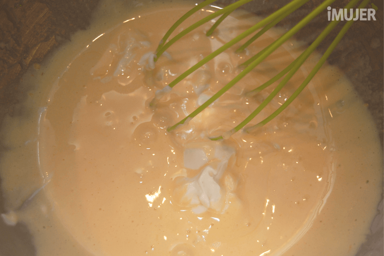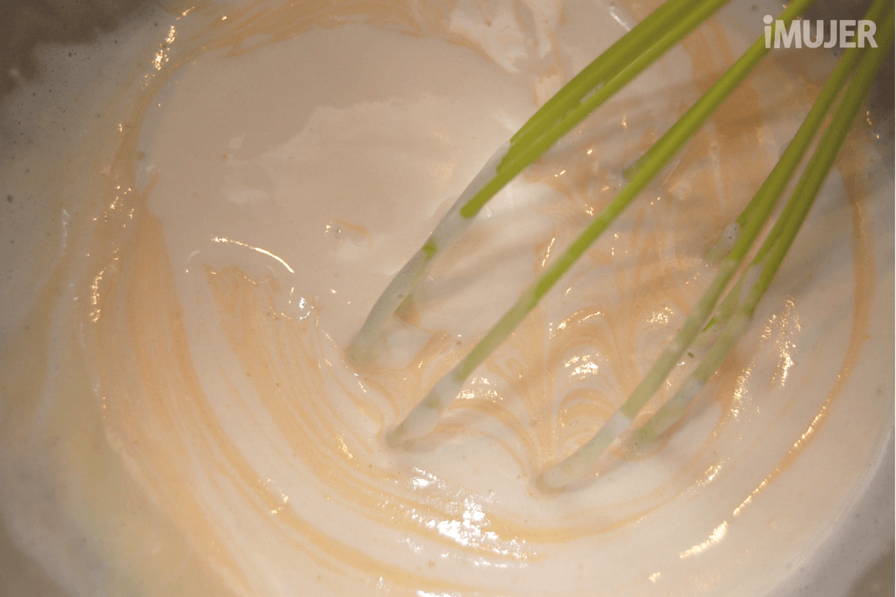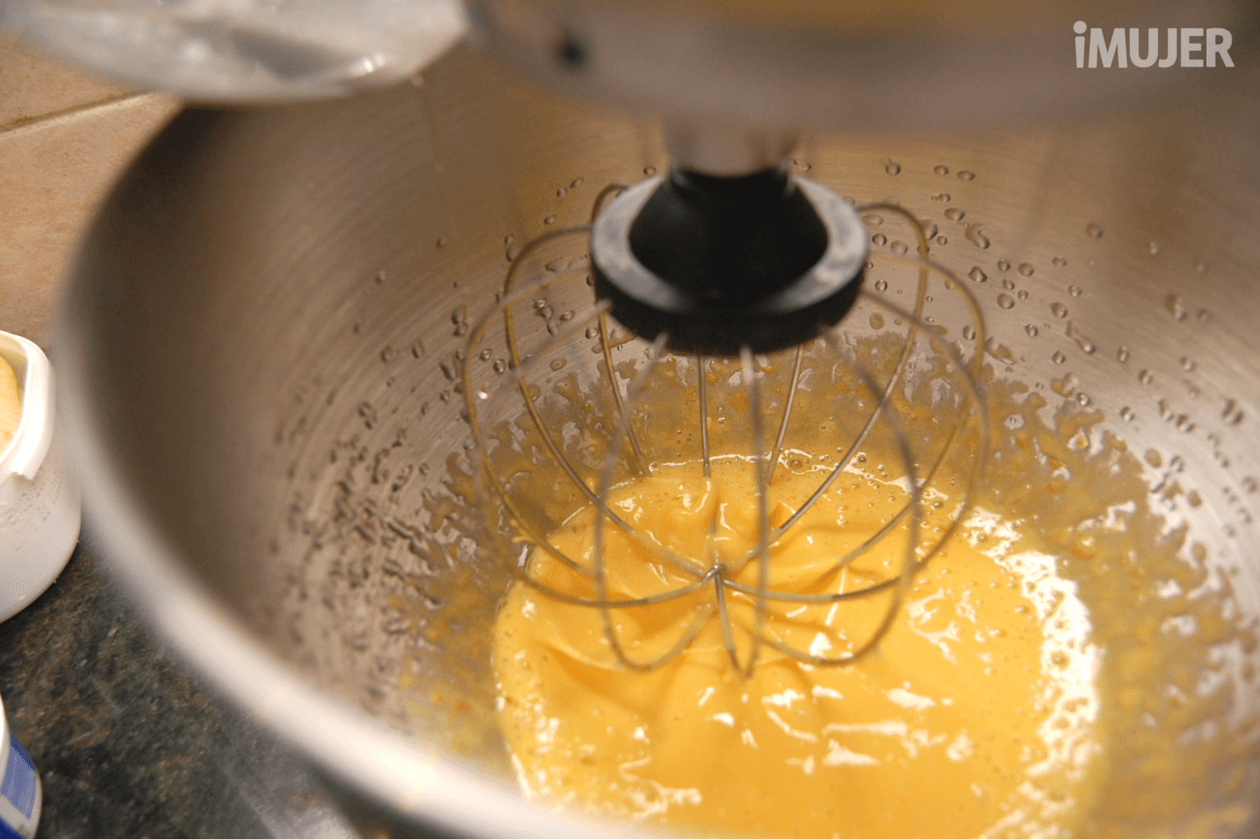 Cuando el almíbar esté listo incorpora al batido de yemas en forma de hilo. Bate hasta que la preparación se enfríe.
