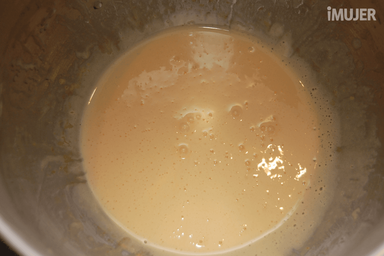 Mientras el almíbar llega a su punto bate las yemas a blanco, deben quedar bien espumosas y pálidas.
