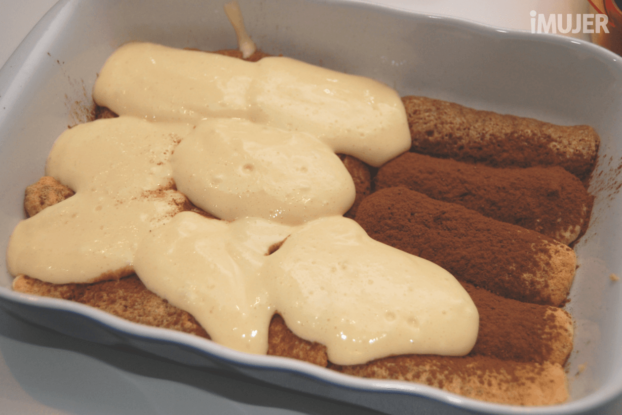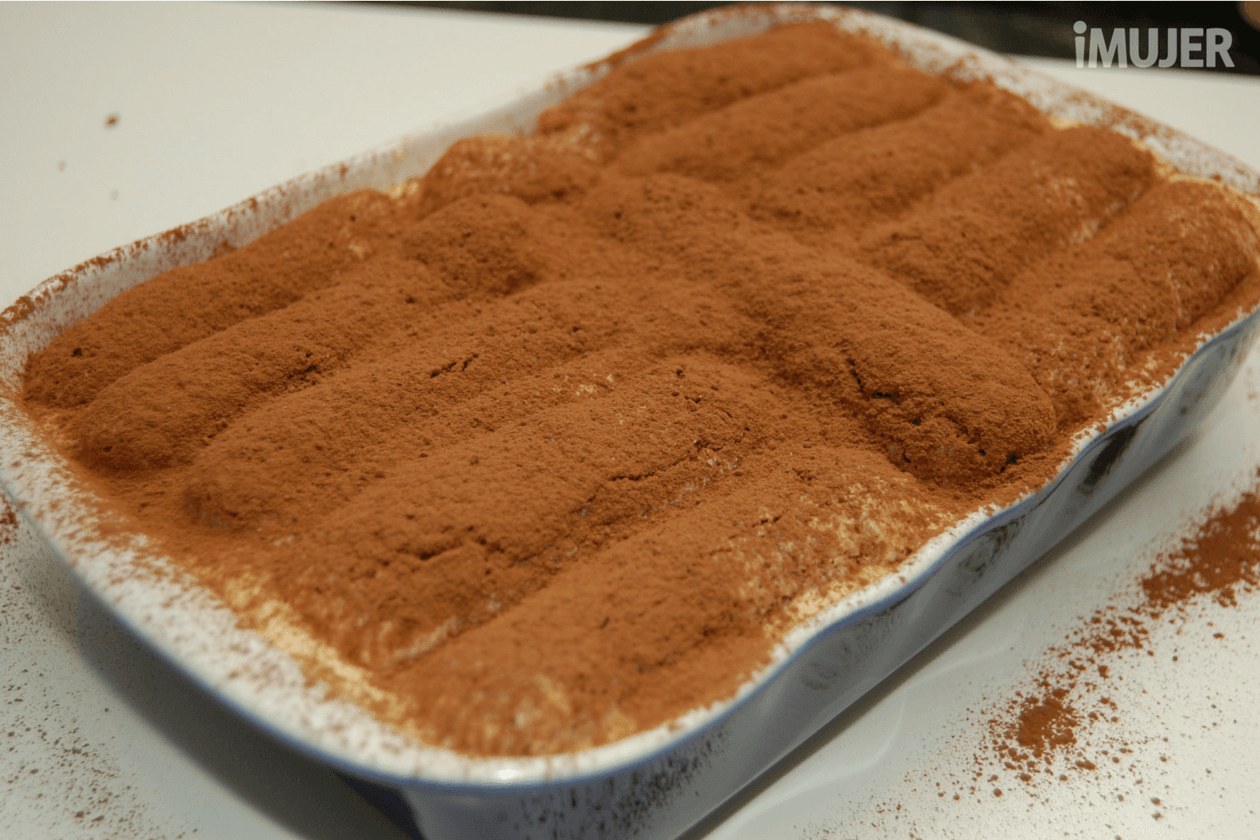 Moja las vainillas en el almíbar de café y coloca sobre la fuente, continúa hasta tener una capa de vainillas, cubre con cacao amargo y luego con crema de queso.