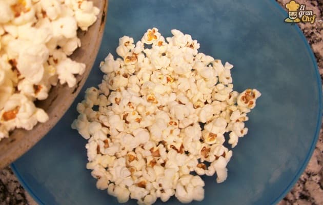 Cuando no escuchemos que el maíz sigue reventando, apagamos el fuego y dejamos al cacerola tapada durante 5 minutos para que baje la temperatura y no nos salte ningún maíz que haya faltado reventar.