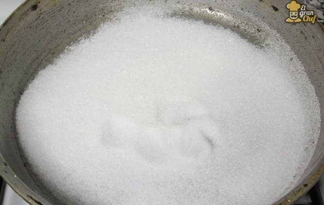 En la misma sartén o cacerola colocamos azúcar hasta cubrir el fondo.