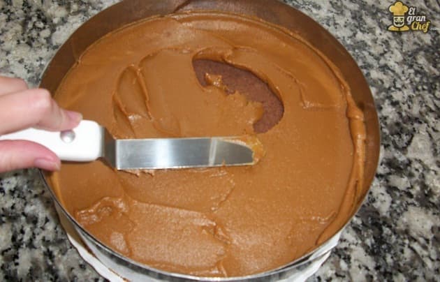 Primero, colocamos un disco, luego untamos con una capa dulce de leche, despues otro disco, otra capa de dulce de leche y por ultimo otro disco.