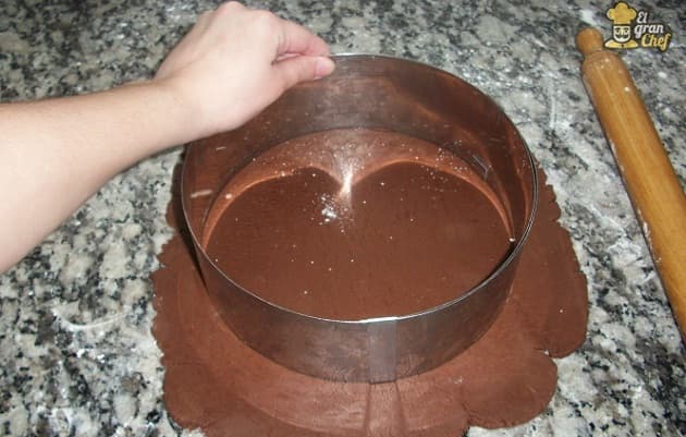 Luego estiramos la masa de 1,5 cm de espesor y cortamos con un aro de 20 cm de diámetro. Debemos cortar 3 discos de esta medida y llevarlos a una placa enmantecada y enharinada (o con papel manteca) y cocinamos a 180ºC durante 15 minutos (hasta que empiecen a dorarse los bordes)