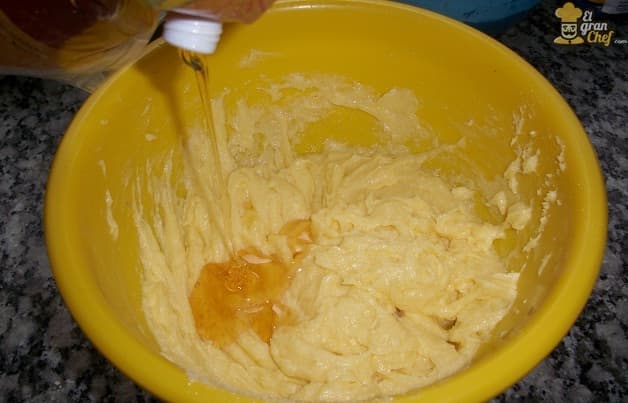 Después agregamos los huevos y la miel y continuamos batiendo.