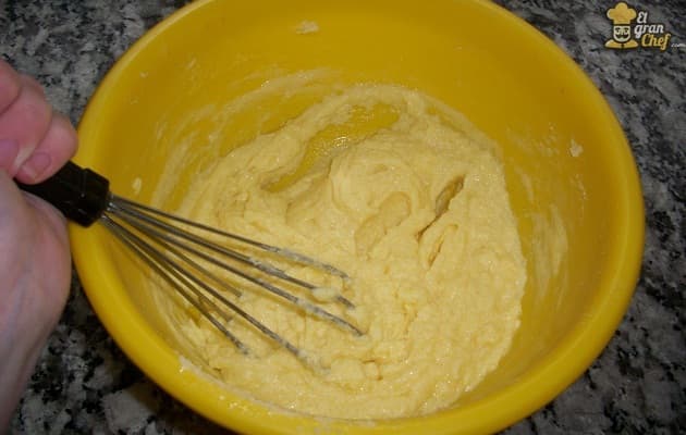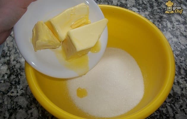Comenzamos batiendo la mantequilla blanda con el azúcar. Preferentemente realizamos este paso con un batidor, hasta formar una crema y no sentir los gránulos de azúcar.