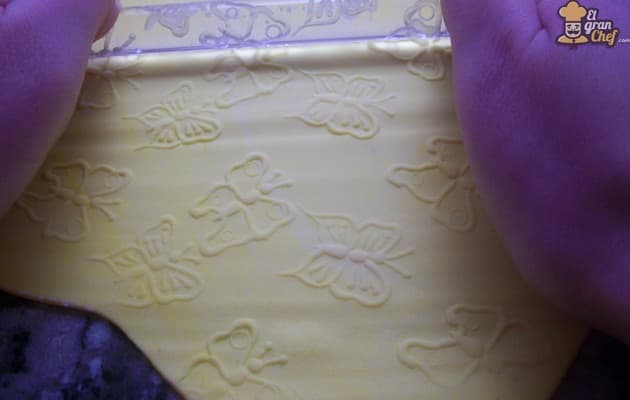 Si queremos, podemos utilizar estos rodillos acrílicos súper novedosos, que una vez estirada la masa, tiene un diseño y se va "imprimiendo" a medida que lo vamos rodando. Es un detalle muy importante ejercer bastante presión para que se copie el dibujo en la pasta.