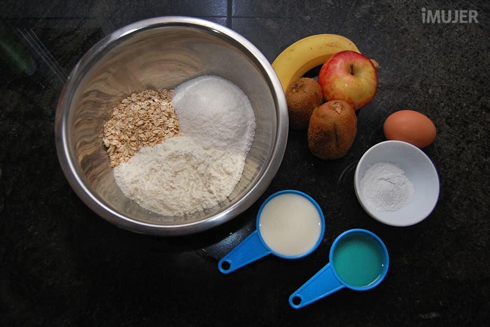 - 2 manzanas medianas, picadas en trozos pequeños yo también le coloqué kiwi, puedes agregar la fruta que más te guste e incluso pasas de uva o nueces.