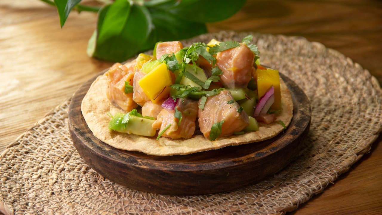 Ingredientes:- 1 taza de salmón crudo picado en cuadros