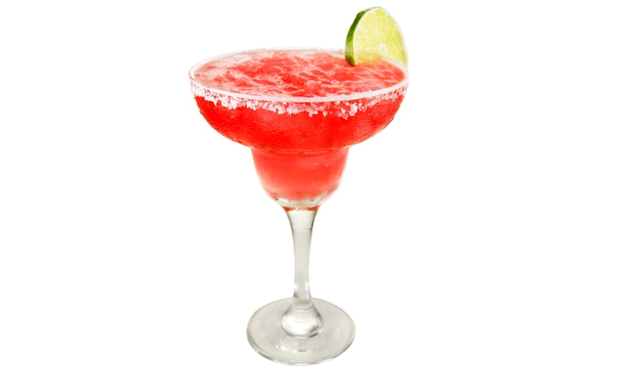 - Humedecer con una rodaja de limón el borde de la copa cóctel tipo margarita y cubrirla con sal.
