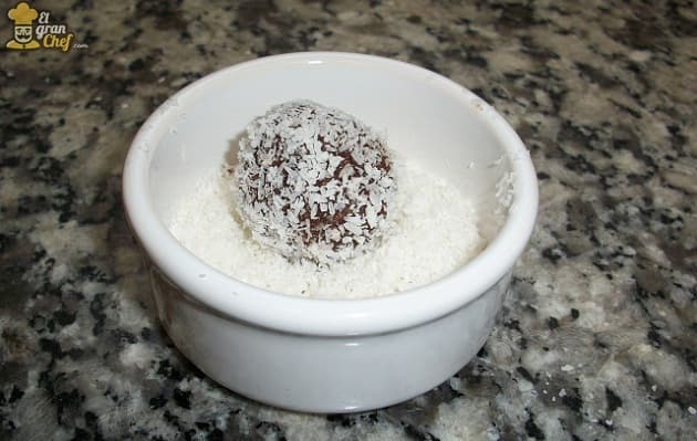 Después hacemos bolitas pequeñas con las manos y las rodamos por coco rallado.