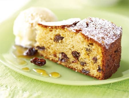 Toma un escarbadientes y pincha todo el pastel. Luego vierte 5 cucharadas de jerez y deja reposar. Sirve caliente o a temperatura ambiente. Luego esp olvorea con azúcar glas. Calienta el resto de las pasas de uvas remojasdas en jerez y sirve junto al pastel, con un poco de helado de vainilla.