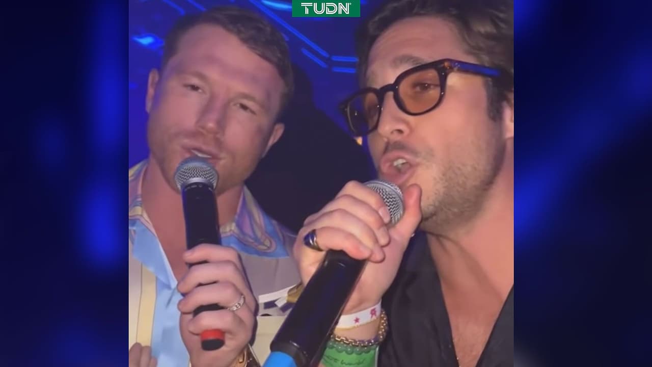 Tras la victoria del fin de semana en la T-Mobile Arena, Canelo Álvarez celebró en grande con sus amigos más cercanos y volvió a cantar en dúo con el actor Diego Boneta.