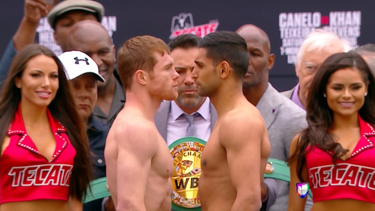 Amir Khan se vio en buena forma para sorpresa de muchos alcanzó las 155 libras, muy por arriba de su peso habitual. También se silenciaron rumores de última hora sobre el posible sobrepeso del 'Canelo', y el campeón marcó las 155 libras exactas.