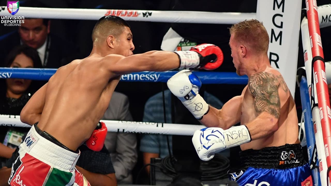 En el segundo round Munguía seguía yendo al frente, ahora con golpes a la cabeza y nuevamente arrinconado al canadiense que trataba de abrazarlo.