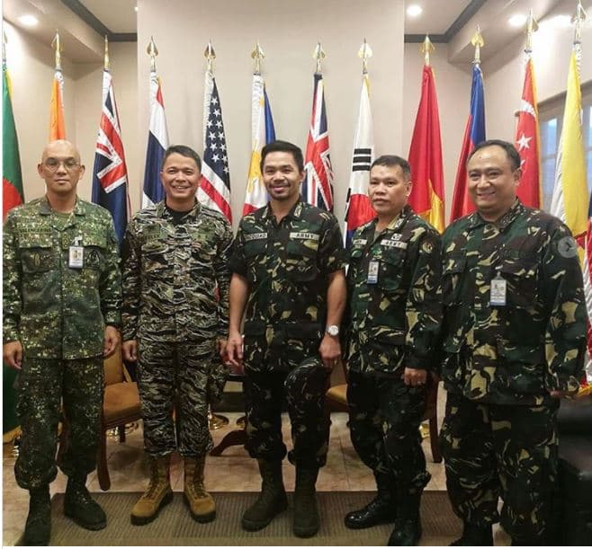 ‘Pac Man’ es un ídolo en su país y la milicia lo ha recompensado. El boxeador de 38 años es reserva de la milicia de su país.