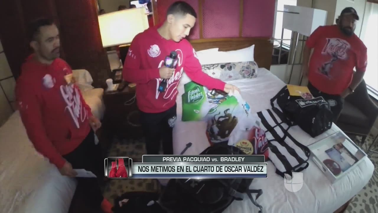 Óscar Valdez le muestra en exclusiva a las cámaras de UDN su cuarto y todo el equipo preparado previo a su pelea.