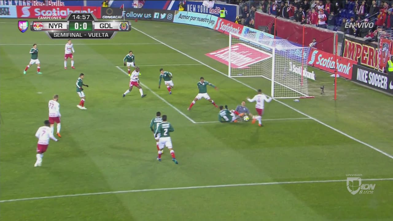 Cota tapa otra llegada del Red Bulls y queda adolorido tras chocar con Pulido
