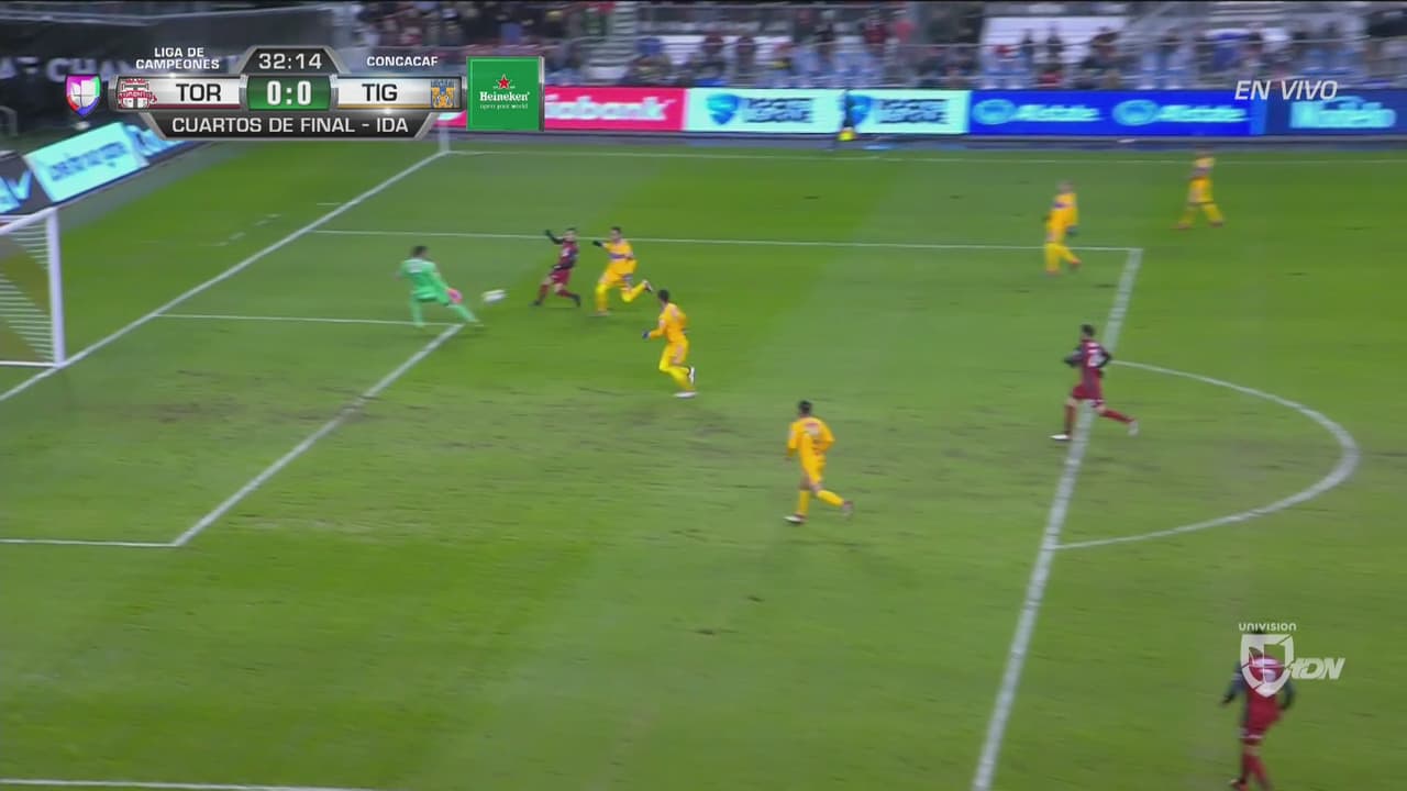 El delantero italiano quedó solo dentro del área, titubeó un segundo y remató de media vuelta, dándole tiempo al portero de Tigres de salir para taparle la primera ocasión clara a los canadienses.