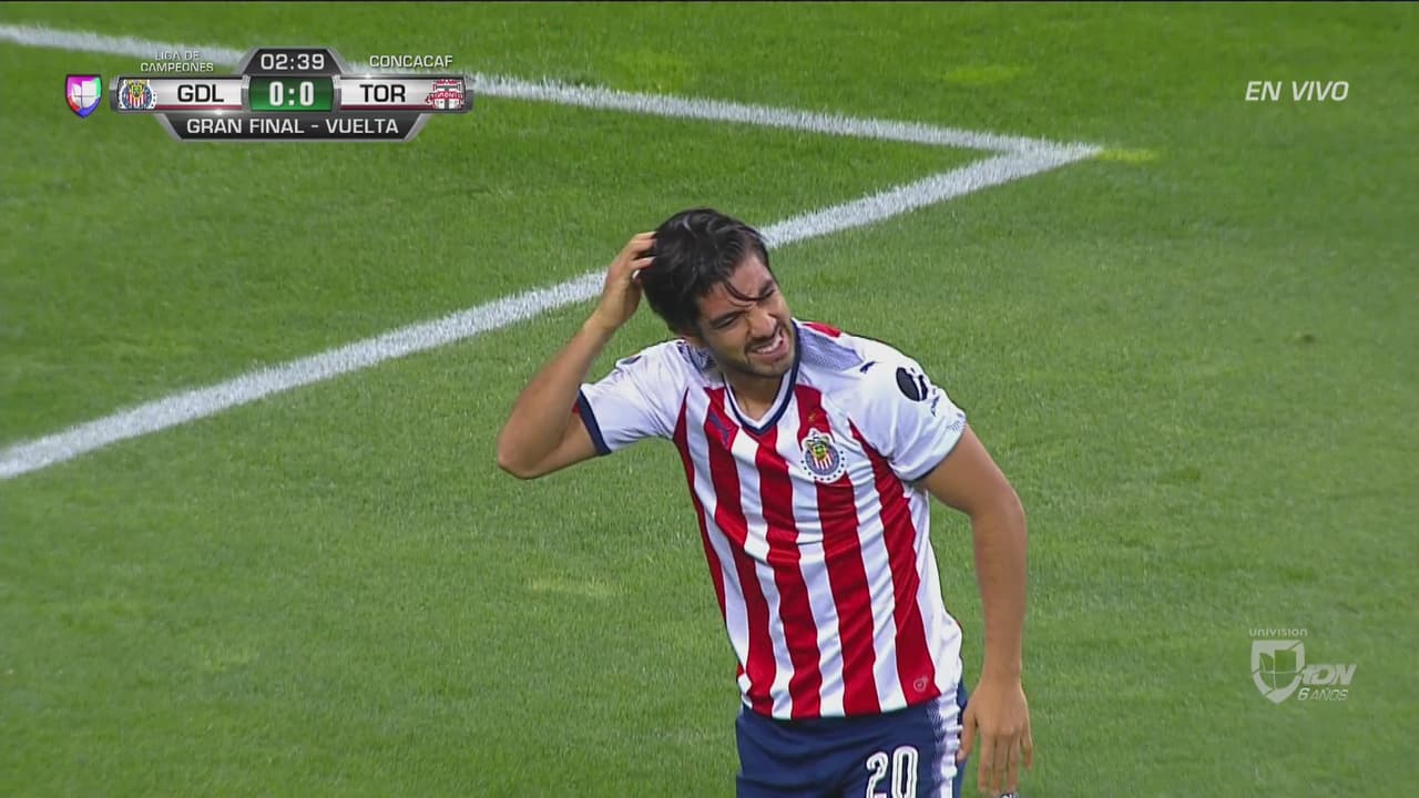 Cisneros desbordó por izquierda y tiró un centro al área que no pudo conectar bien el #20 del Guadalajara, que ya da un primer aviso en el arco del Toronto FC.