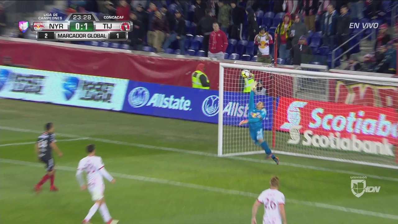 El arquero del New York Red Bulls se sacó de la chistera un manotazo increíble que frustró lo que iba a ser una pintura del mexicano de Xolos, que buscaba su doblete y sobre todo empatar el global.