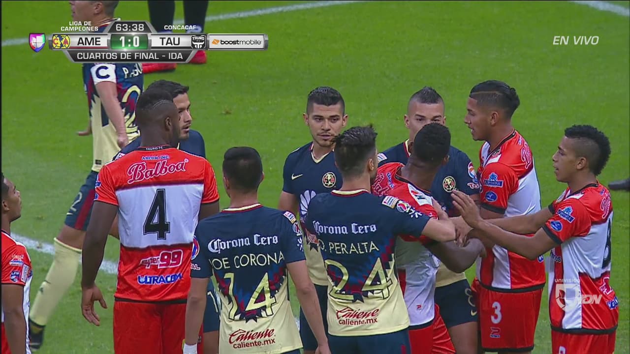 Paul Aguilar y Richard Dixon se enroscaron en una discusión que no pasó a mayores gracias a la intervención de los compañeros del americanista.