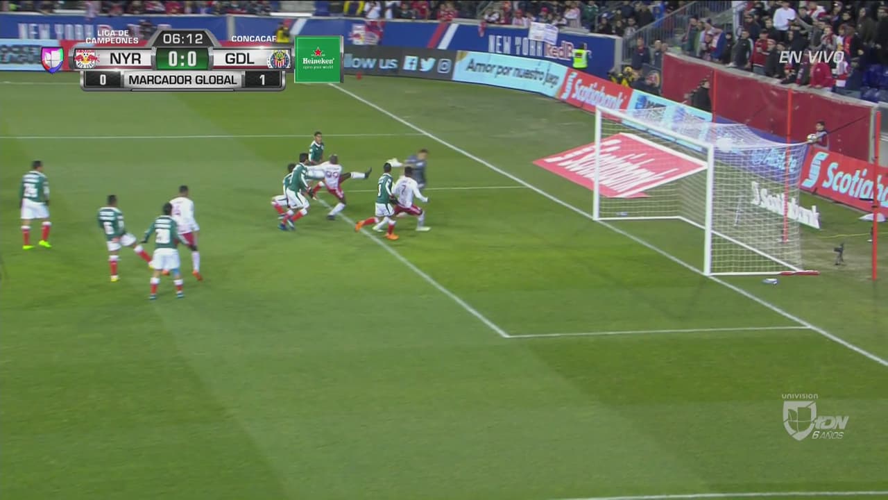 Rodolfo Cota atajó un disparo de Bradley Wright-Phillips a quemarropa y luego la defensa desvió el contrarremate del pelirrojo neoyorquino.