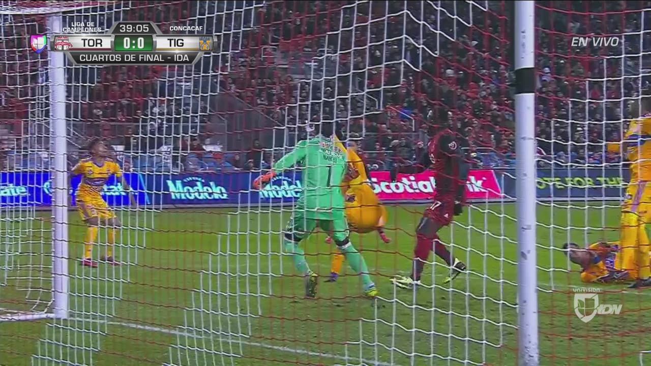 El lateral mexicano tuvo que emplear ese recurso dentro del área cuando el centro delantero del Toronto se preparaba para fusilar la cabaña de Tigres.