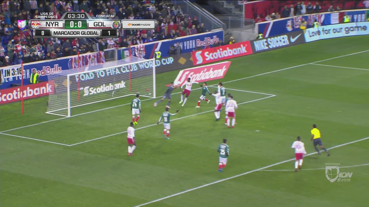 El experimentado atacante inglés reclamó que era sujetado tras otra jugada de peligro donde la defensa de Chivas no supo contener las llegadas del Nueva York.