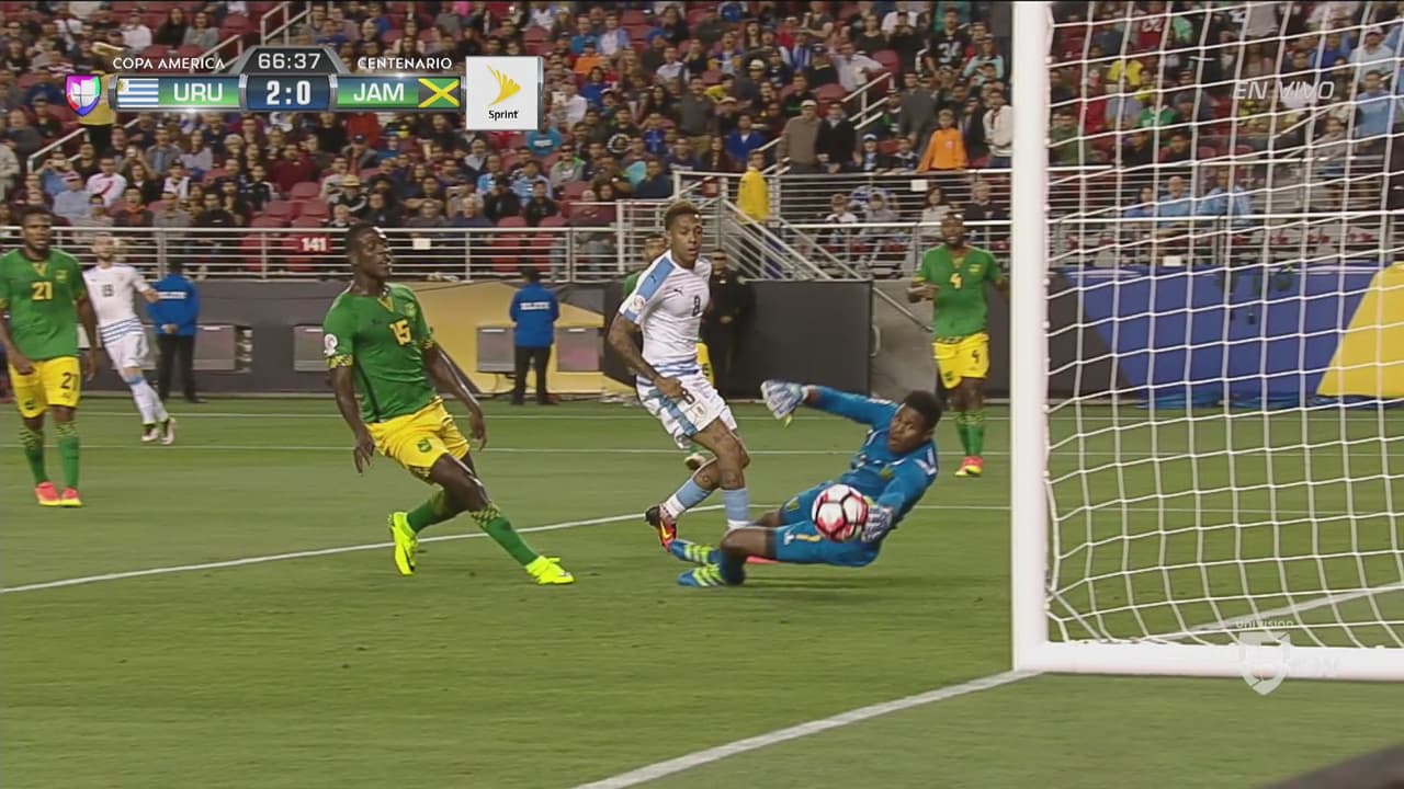 El segundo de Uruguay fue autogol con la mano del defensa jamaiquino tras un centro de Nicolás Lodeiro.
