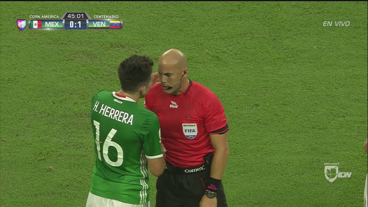 Durísimo choque le cuesta la tarjeta amarilla a Héctor Herrera