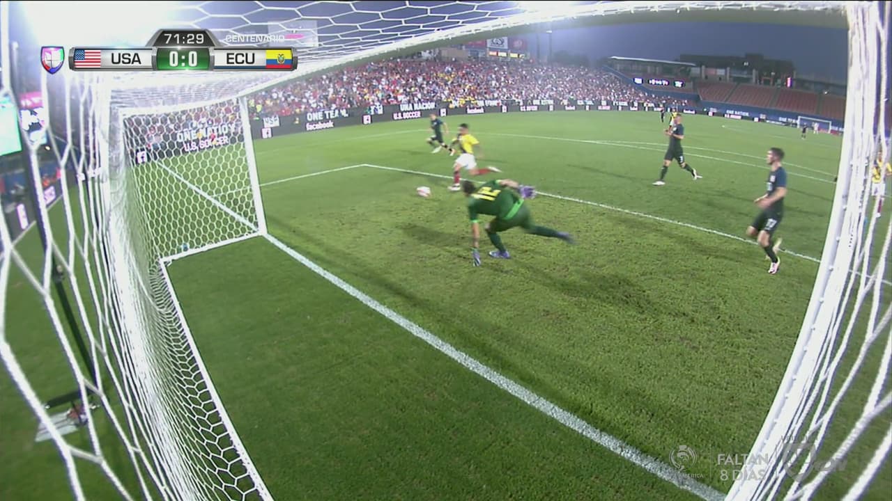 Estados Unidos no consigue culminar las jugadas y el esférico va de un lado al otro del área del conjunto sudamericano.