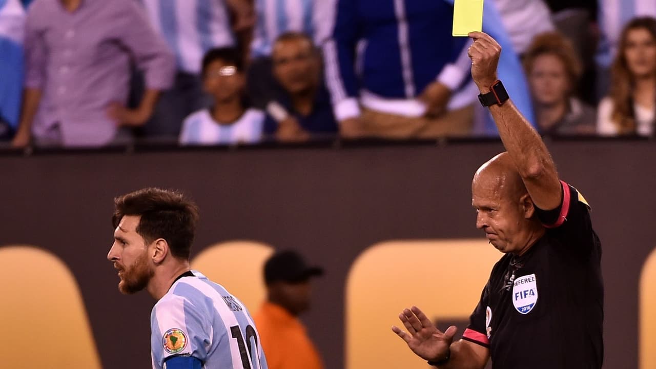 Messi cayó en el área y recibió tarjeta amarilla