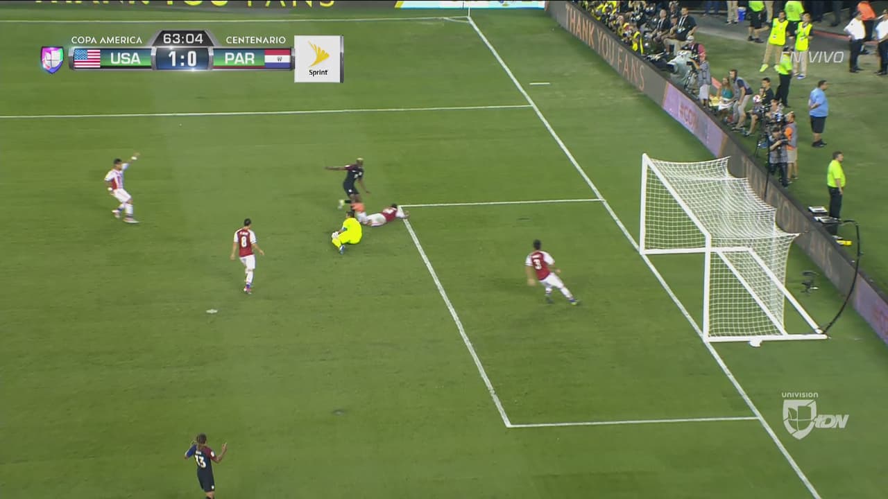 El jugador de Estados Unidos Zardes se perdió la oportunidad de aumentar el marcador para el Team USA ante Paraguay