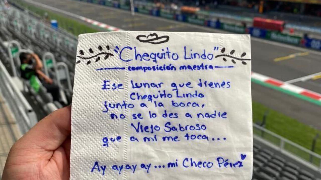 Y sí, en una muestra más del característico ingenio del mexicano, la icónica canción del 'Cielito Lindo' fue tomada y adaptada en alguno de sus versos para focalizarla en arengar a Checo en la carrera que tendrá lugar en el Autódromo de los Hermanos Rodríguez el domingo 30 de octubre. La afición se ha movilizado en redes sociales para difundirla lo más posible.