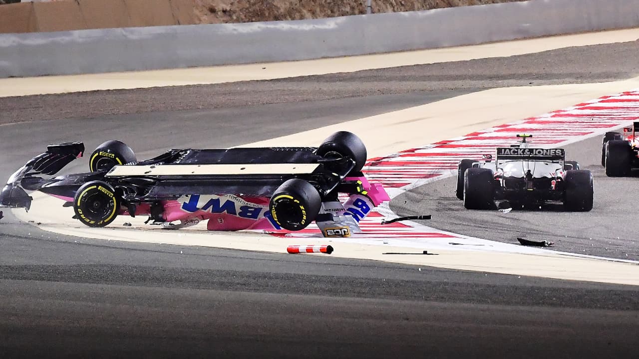 El compañero de Sergio Checo Pérez en Racing Point, Lance Stroll, protagonizó una volcadura en la rearrancada del Gran Premio de Bahrein de la Fórmula 1.