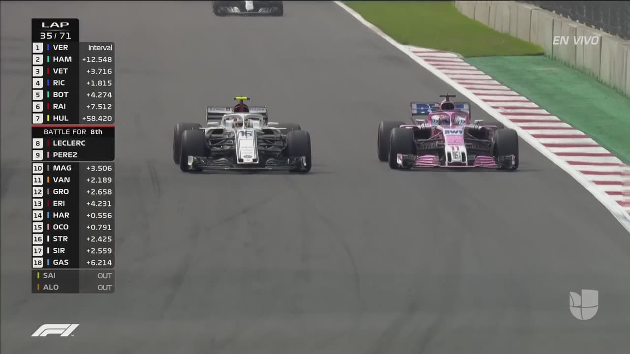 El Checo arrancó en la posición número 13, pero muy pronto subió dos lugares y estuvo en una dura lucha con Marcus Ericsson por el décimo puesto, última plaza que otorga puntos.