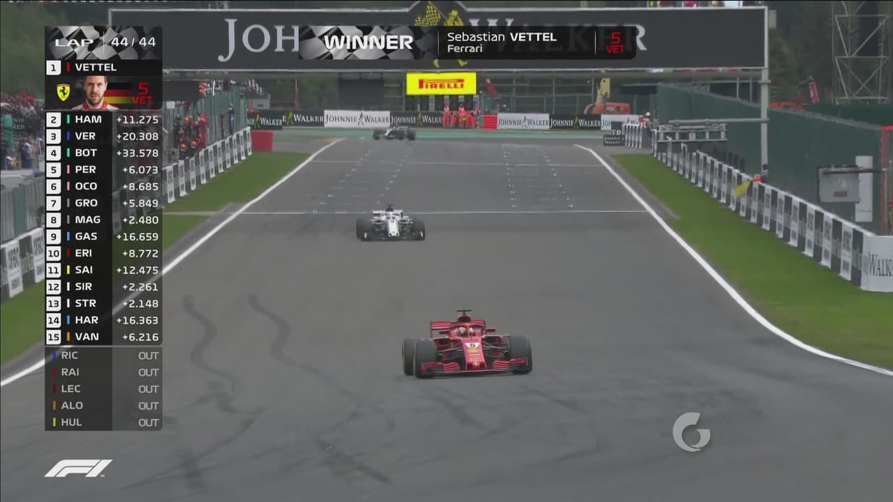 El alemán Sebastien Vettel (Ferrari) conquistó este domingo en Spa-Francorchamps el Gran Premio de Bélgica de la Fórmula 1, por delante del británico Lewis Hamilton (Mercedes) y del holandés Max Verstappen (Red Bull).