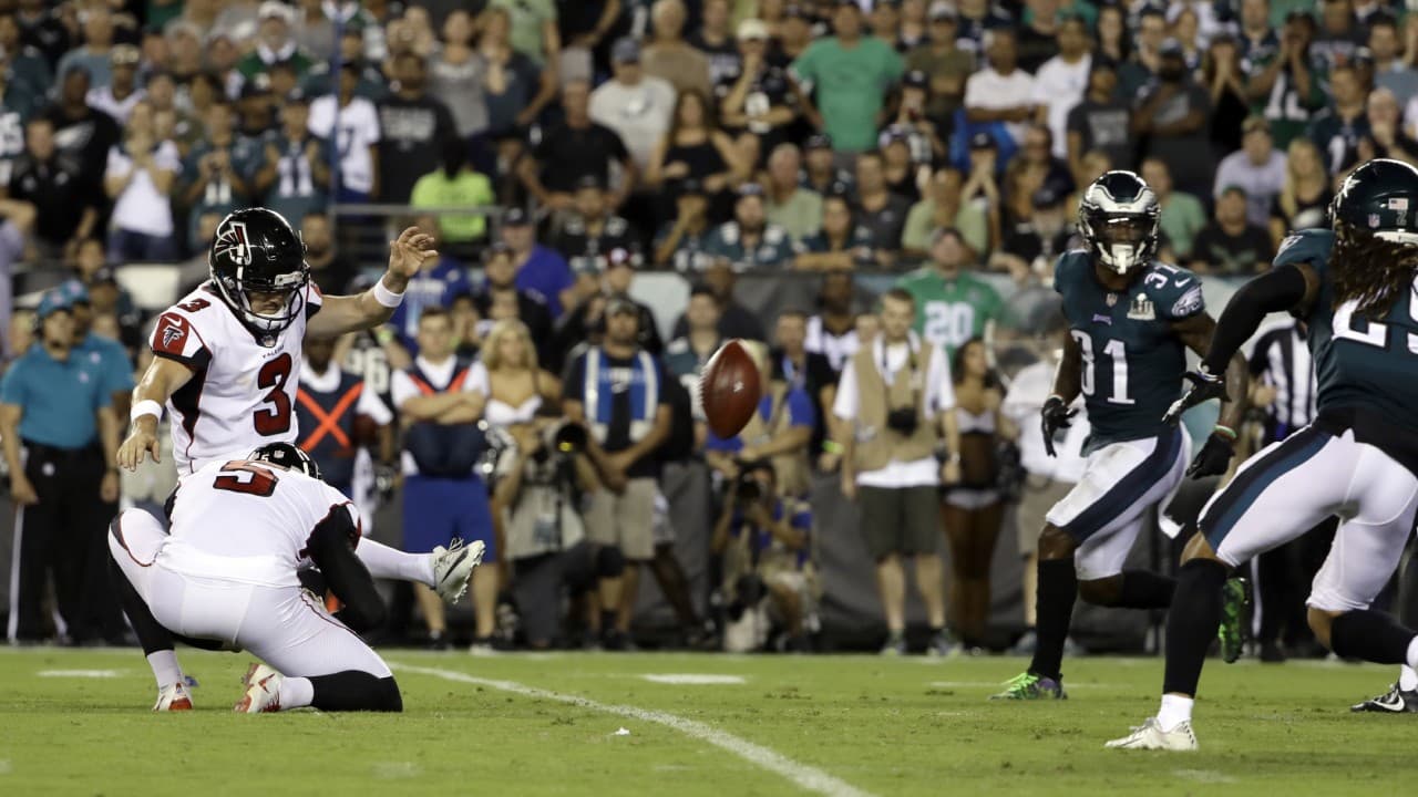 Un pase de 5 yardas de Matt Ryan no pudo ser atrapado dentro del terreno de juego por Julio Jones con el reloj en cero. Philadelphia gana el primer partido de la temporada por 18-12 ante Atlanta.